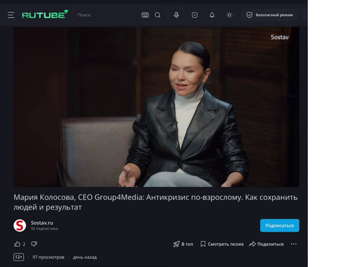 🤓К большому сожалению видеоинтервью Состава не смотрят. Например, любопытнейший ролик с Марией Колосовой за сутки посмотрело всего 96 человек. Зря. В материале на Рутьюбе руководитель группы Grоup4media не только дает прогнозы по развитию рынка в грядущем сложном году и рассказывает нам о том зачем нужны агентства в современном экосистемном мире, но и касается в финале личного, не банального.