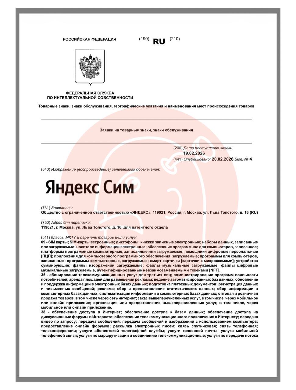 🤓Яндекс задумал стать мобильным оператором и подал на регистрацию соответствующий товарный знак.