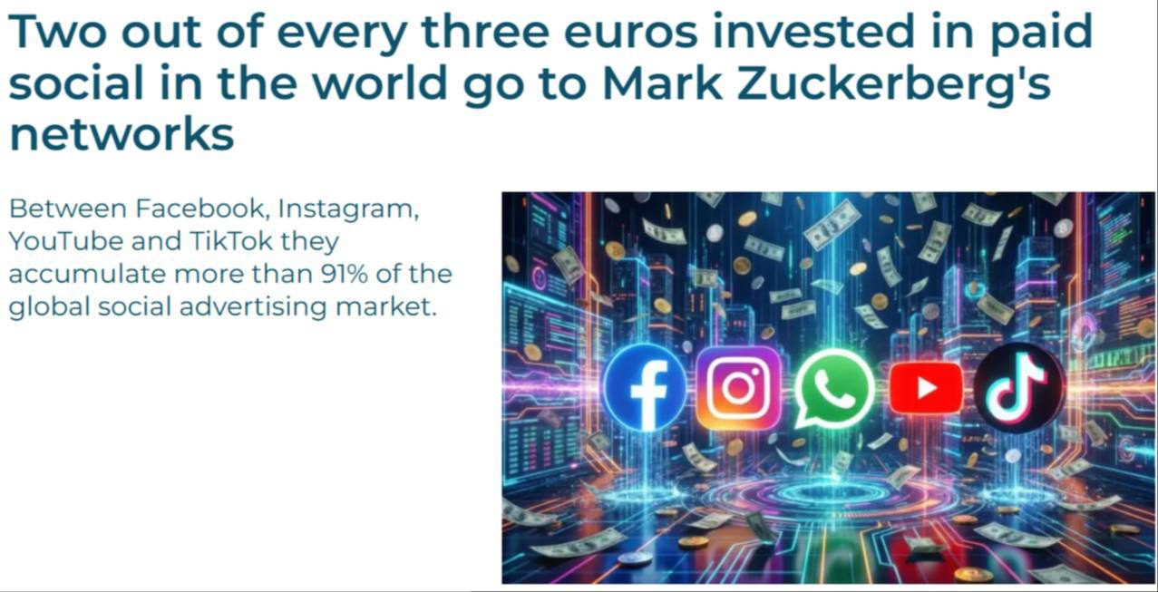 🤓В мире около двух третей всех расходов на рекламу в соцсетях получают платформы компании Meta* Platforms