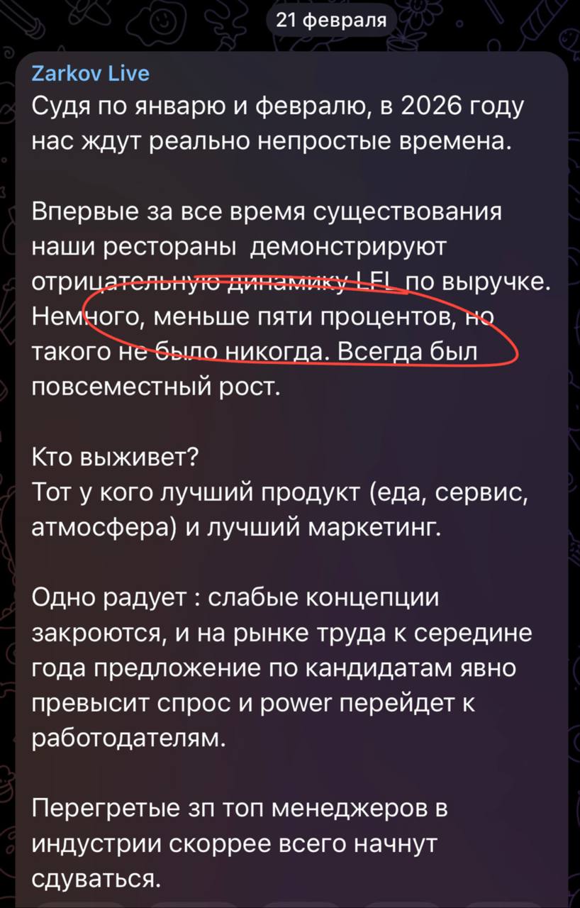 Есть еще одна проблема. Большая часть ресторанного «бизнеса» существовала за счет черной кассы и левых чеков. «У нас сегодня карты не работают — наличными или на телефон», что было всегда в крупнейших ресторанных сетях с легендарными собственниками. А сейчас государство занялось обелением бизнеса и схема сломалась. Все потеряло смысл — по-белому далеко не все умеют работать в плюс.