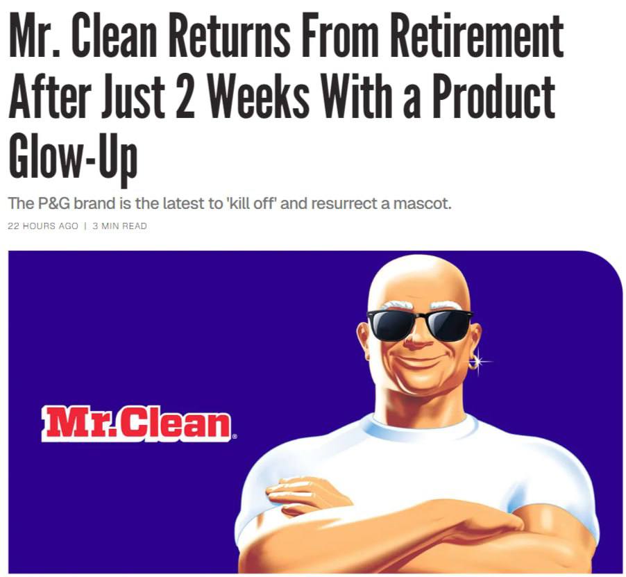 Кампания Procter & Gamble оказалась маркетинговым ходом для продвижения обновлённой линейки средств, включая крупнейшее за 20 лет обновление губки Magic Eraser и новые чистящие продукты. Возвращение героя объявили 4 марта через соцсети и специальное мероприятие в Нью-йорке.