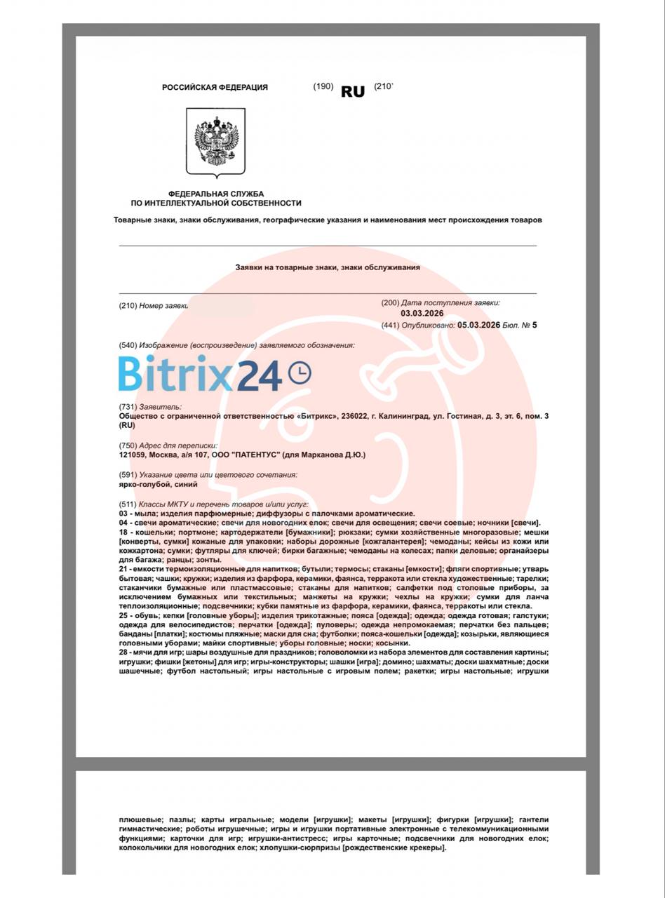 🤓Битрикс решил монетизировать свою «безудержную популярность» среди офисного планктона. На регистрацию подан товарный знак «Битрикс 24» в самых неожиданных категориях: от мыла и свечек — до шашек и ароматических крекеров. В общем, фанаты 1с заслуживают то, что получат…