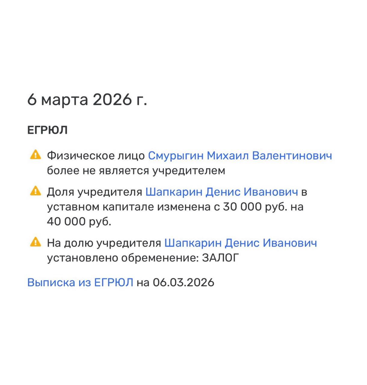 На долю второго акционера Шапкарина (в пользу которого и отошли акции) — наложен залог, согласно данным ЕГРЮЛ.