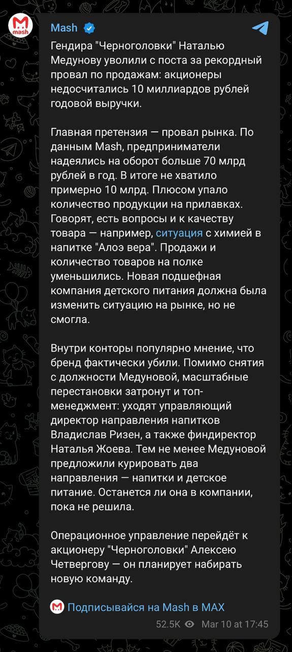 😵Это что-то новенькое. Mash решил сожрать весь хлеб индустриальных порталов в карьерных новостях об увольнениях топ-менеджерах.