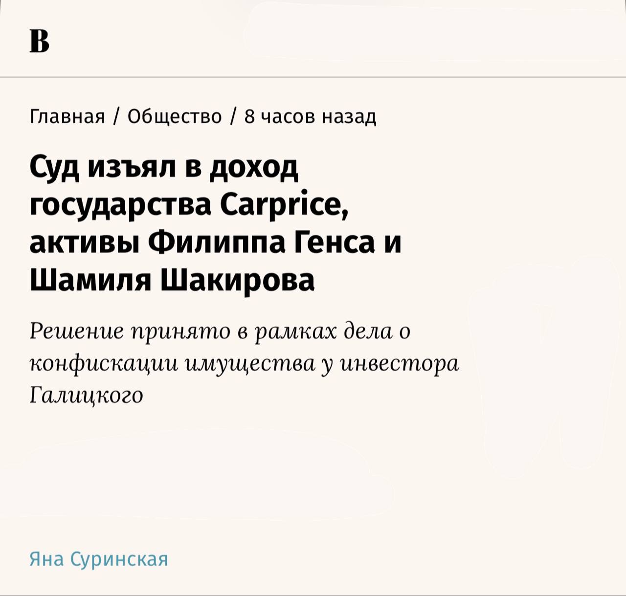 Также переданы государству платформа CarPrice и доли/акции Филиппа Генса («Ланит») и Шамиля Шакирова («Айтеко») в ряде компаний, которые, по версии суда, использовались для финансирования Галицкого и его структуры.