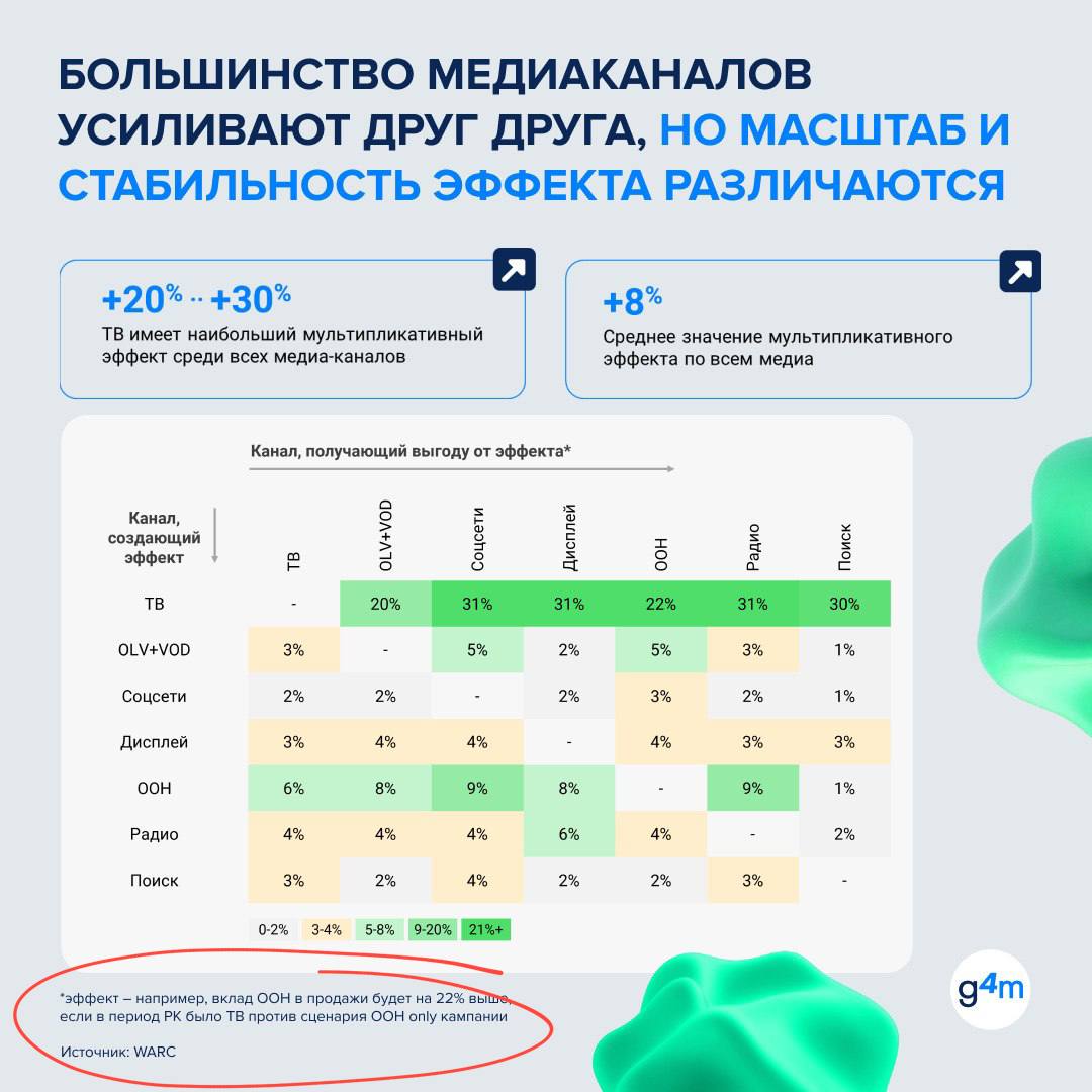 Анализ подается в логике «какой будет добавочный эффект, если во время запуска кампании в различных каналах, усилить их ТВ-эфиром», что разъяснено в выделенном комментарии.