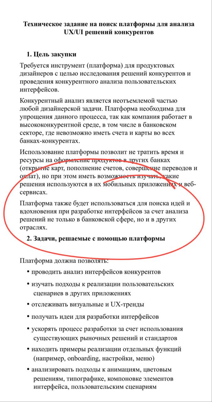 «Платформа также будет использоваться для поиска идей и вдохновения при разработке интерфейсов за счет анализа решений [конкурентов] не только в банковской сфере, но и в других отраслях».