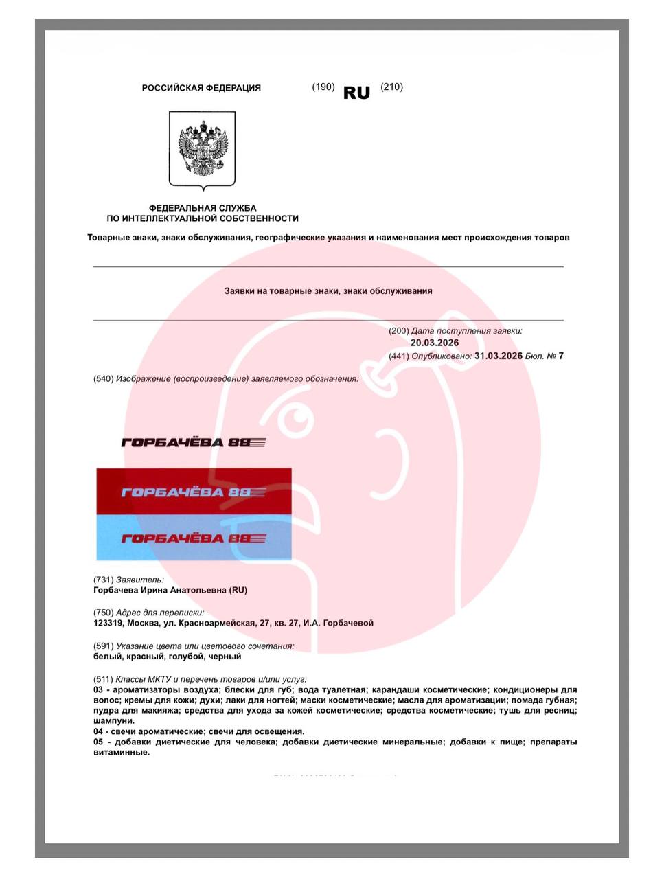 🤓Актриса Ирина Горбачева (на фото) регистрирует новые товарные знаки. Судя по всему это всякие штуки для девочек, которыми торгуют на ВБ.
