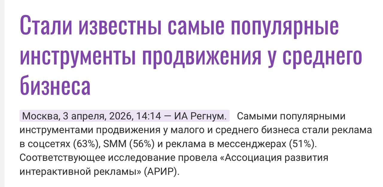 Π‘ΠΎΠ³Π»Π°ΡΠ½ΠΎ Π΄Π°Π½Π½ΡΠΌ «ΠΠ ΠΠ Digital Advertisers Barometer ΠΏΠΎ ΠΌΠ°Π»ΠΎΠΌΡ ΠΈ ΡΡΠ΅Π΄Π½Π΅ΠΌΡ Π±ΠΈΠ·Π½Π΅ΡΡ 2026» (Π΄Π΅ΠΊΠ°Π±ΡΡ 2025, 2188 ΡΠ΅ΡΠΏΠΎΠ½Π΄Π΅Π½ΡΠΎΠ²), ΡΠΈΡΡΠΎΠ²Π°Ρ ΡΠ΅ΠΊΠ»Π°ΠΌΠ° ΡΡΠ°Π»Π° Π±Π°Π·ΠΎΠ²ΡΠΌ ΠΈΠ½ΡΡΡΡΠΌΠ΅Π½ΡΠΎΠΌ ΠΌΠ°ΡΠΊΠ΅ΡΠΈΠ½Π³Π° Π΄Π»Ρ ΡΠΎΡΡΠΈΠΉΡΠΊΠΈΡ