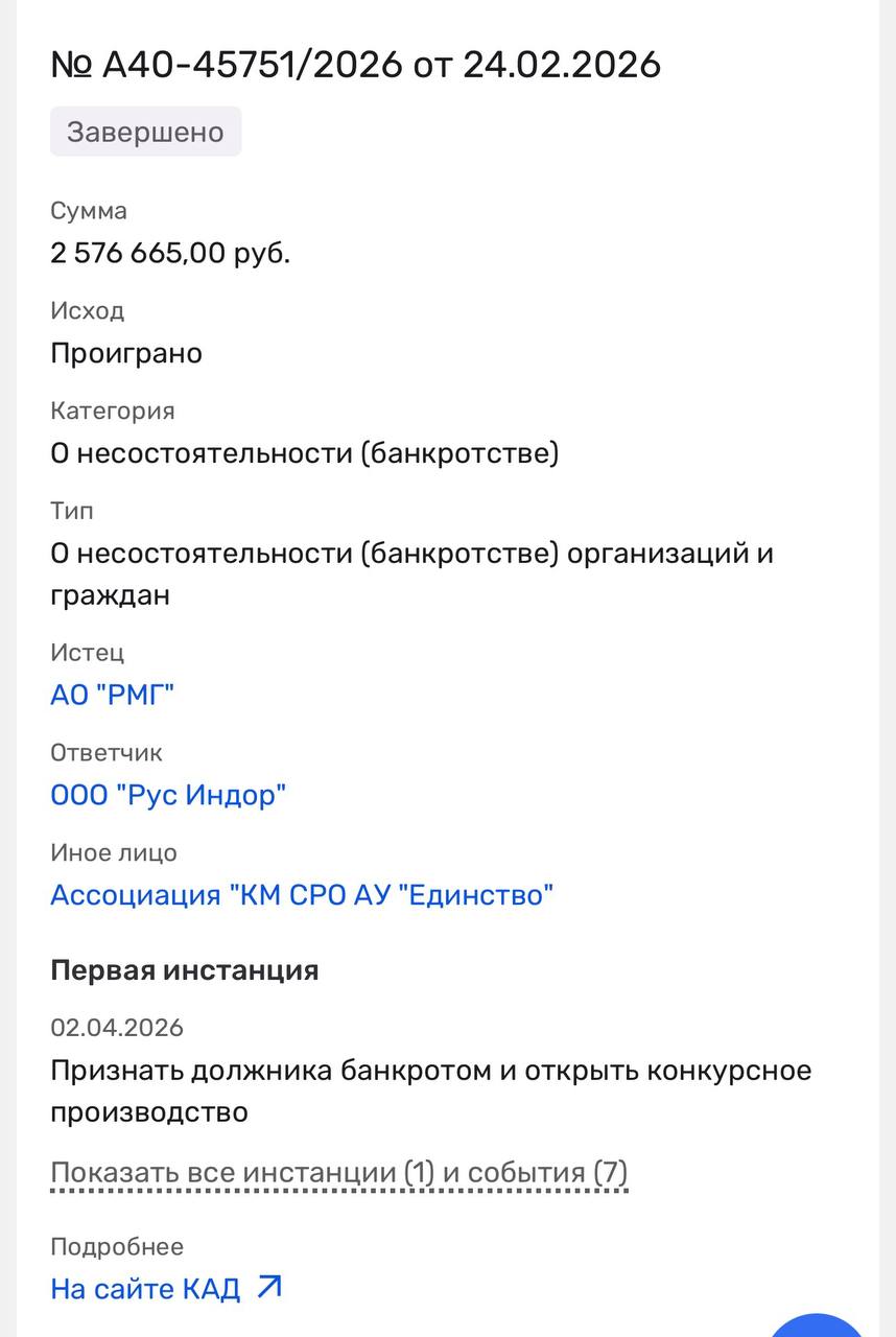 🤔Indoor Russia признана банкротом в суде. В лучшие годы (2023) оборот компании составлял почти 2 миллиарда рублей.