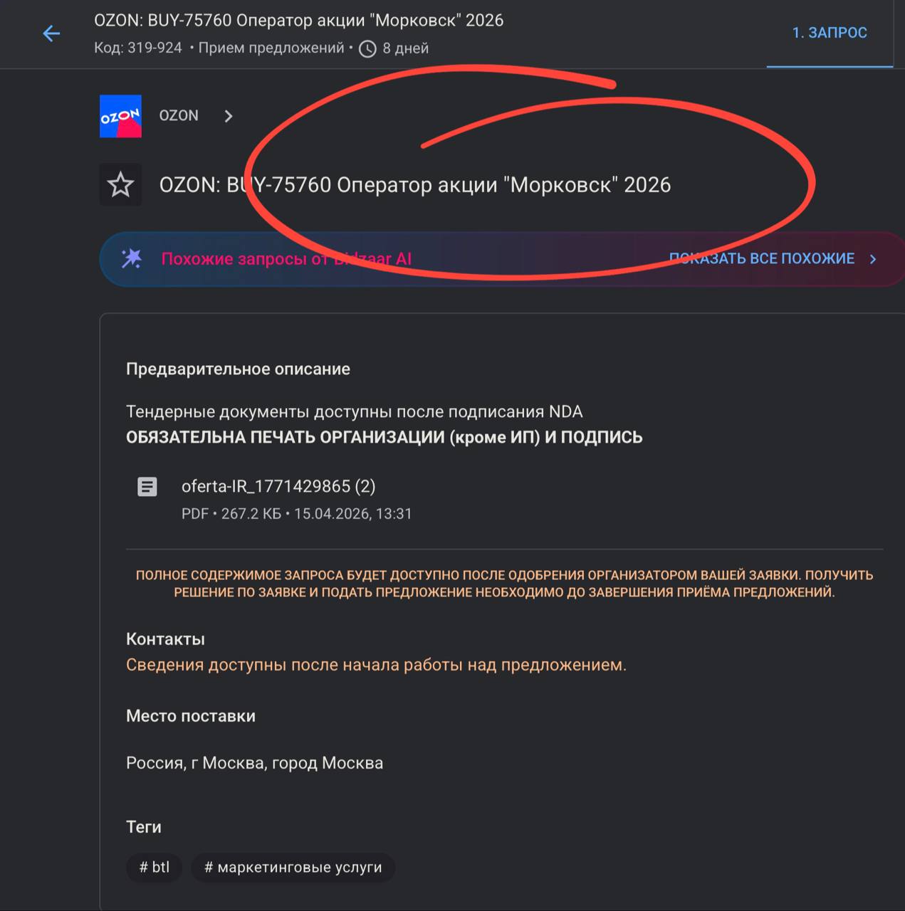 🤓Ozon продлевает акцию «Морковск» на 2026 год. Весь бриф под NDA, но мы все поняли. Компания ищет оператора для пролонгирования успешной геймификации.