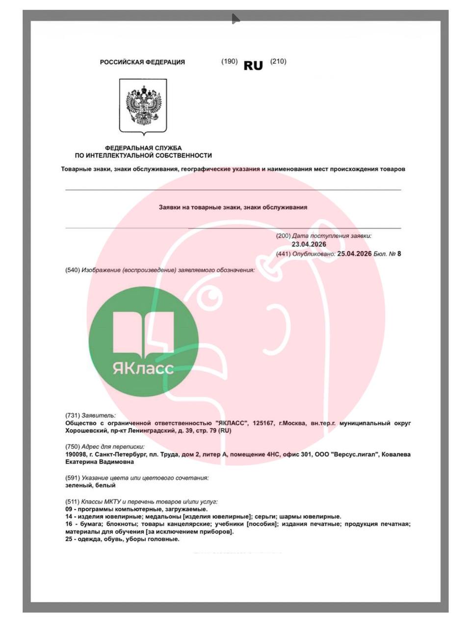 Теперь юрлицо принадлежащее ВК регистрирует товарный знак «Якласс».